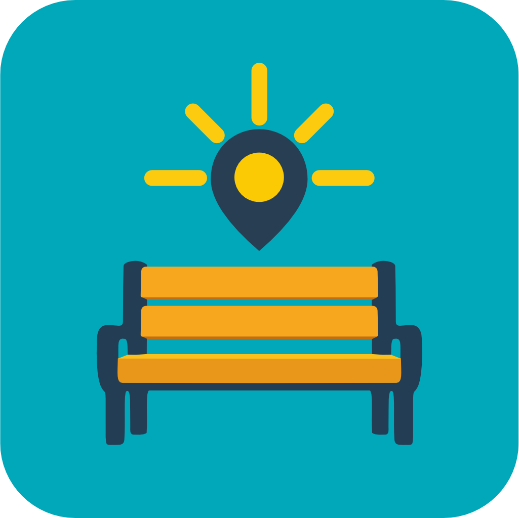 ベンチ、公園、カフェなど、日常の移動の途中でほっとできる場所との出会いを広げます。